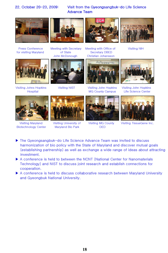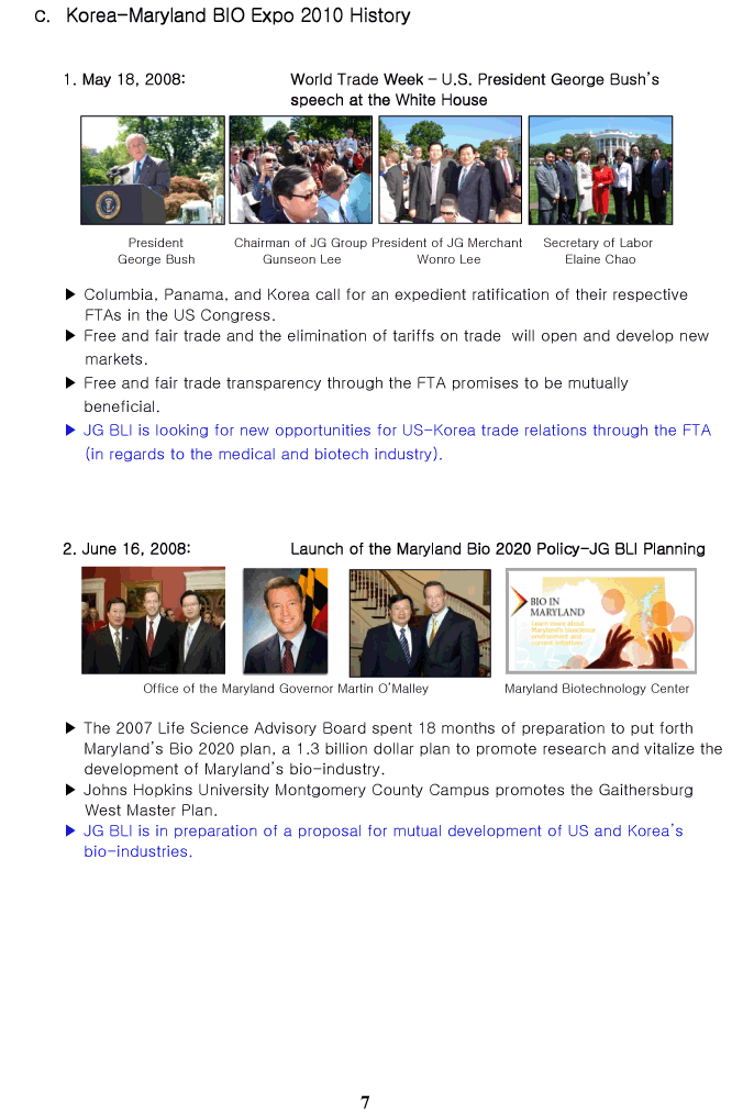 C. History 16.1st Visit to Korea promoting Maryland Bio 2020 Policy