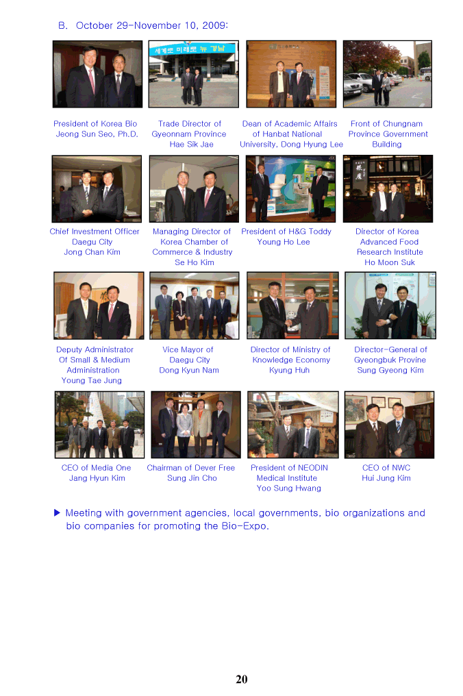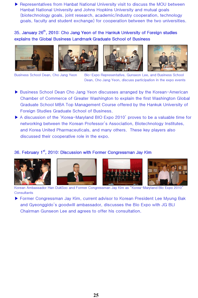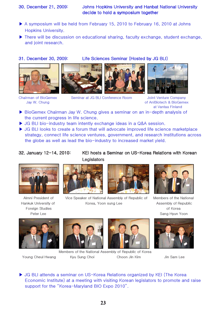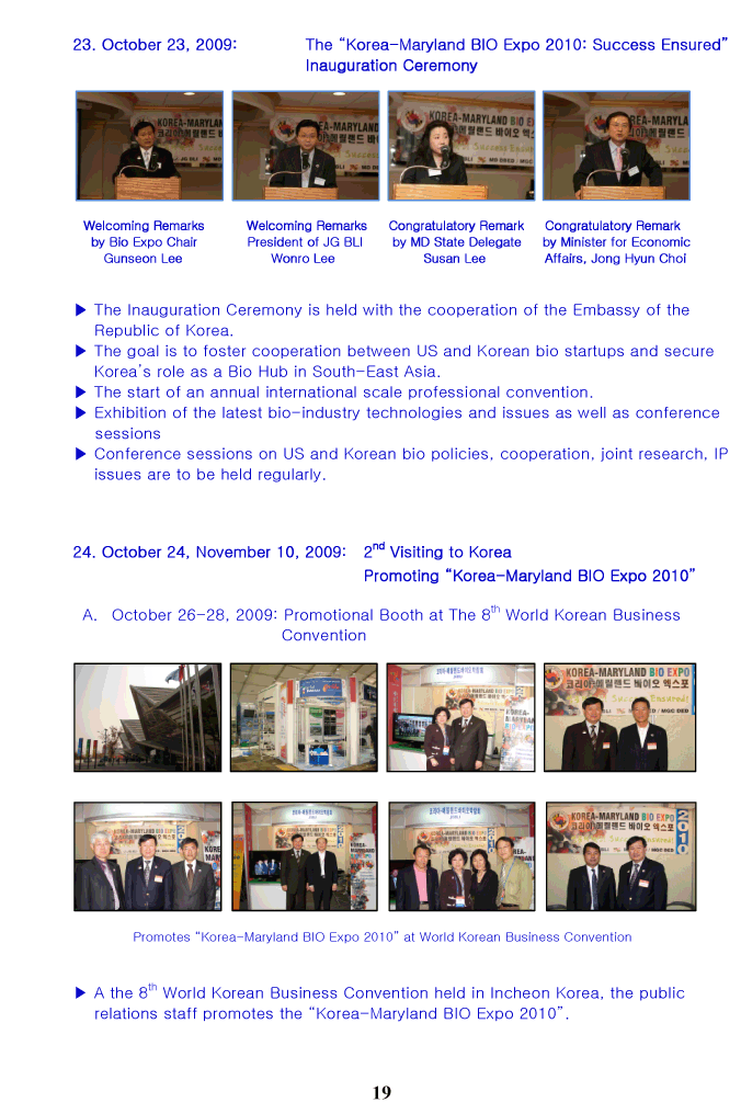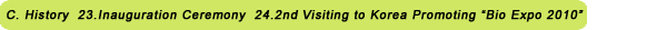 C. History 23.Inauguration Ceremony 24.2nd Visiting to Korea Promiting "Bio Expo 2010"