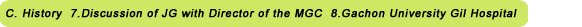 C. History 7.Discussion of JG with Director of the MGC 8.Gachon University Gil Hospital