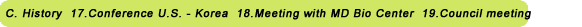 C. History 17.Conference U.S. - Korea 18.Meeting with MD Bio Center 19.Council meeting