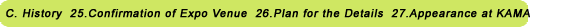 C. History 25.Confirmation of Expo Venue 26.Plan for the Details 27.Appearance at KAMA