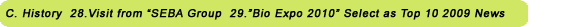 C. History 28.Visit from "SEBA Group 29."Bio Expo 2010" Select as Top 10 2009 News