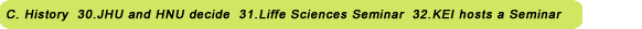 C. History 30.JHU and HNU decide 31.Life Sciences Seminar 32.KEI hosts a Seminar