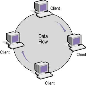 : connected user goes from one computeer to the other. no central equipment necessary. |